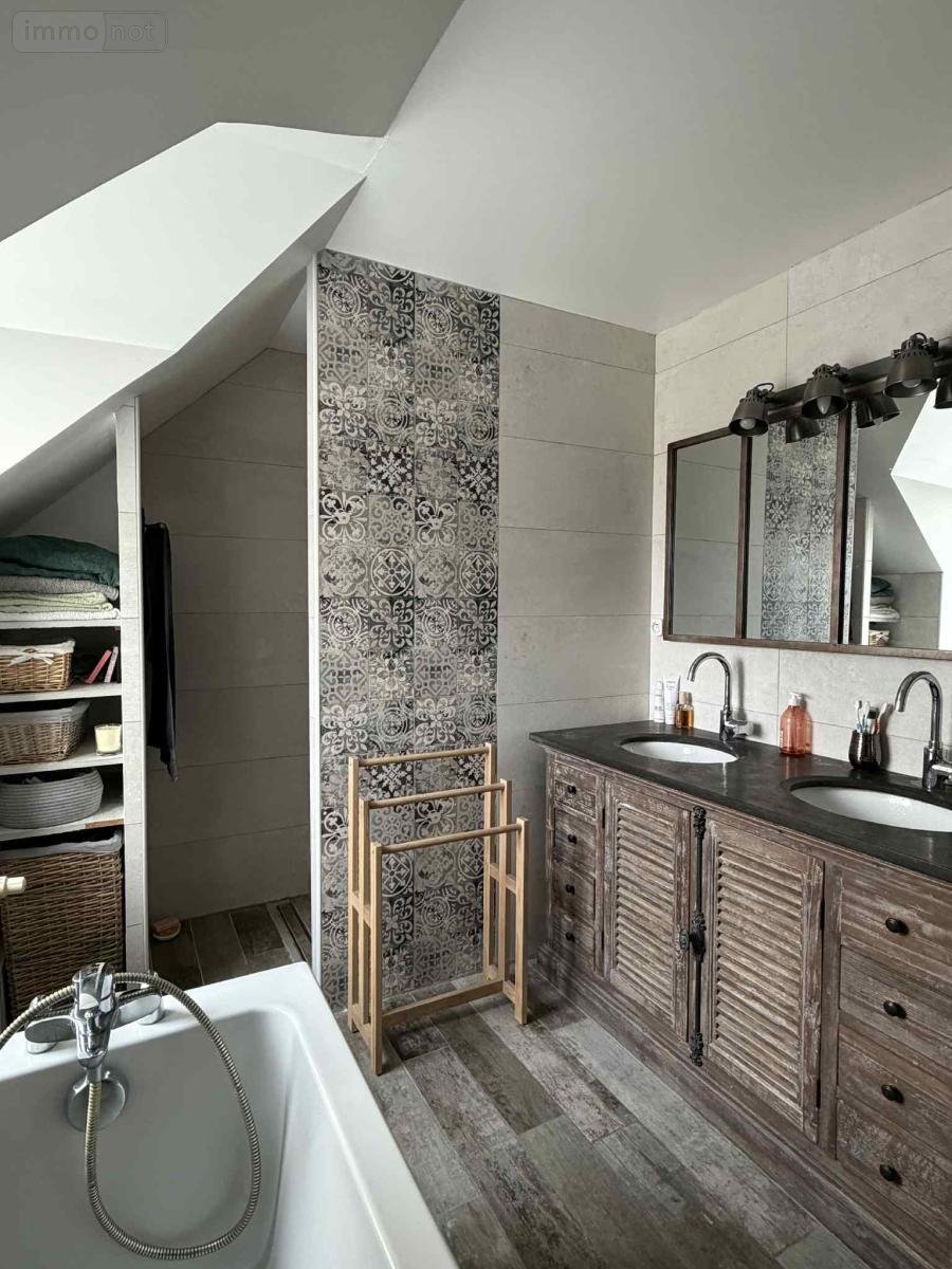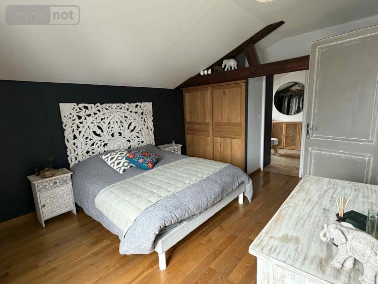 A l'étage : bureau, chambre avec dressing, WC, salle de bains, deux autres chambres dont une avec mezzanine.