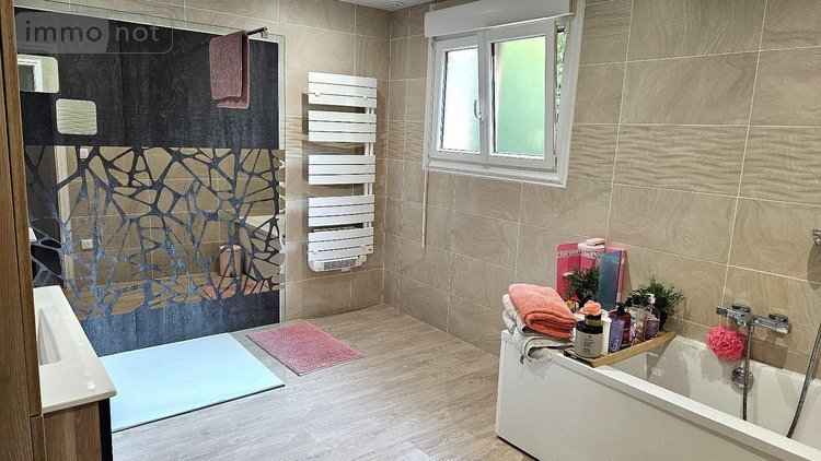 Au RDC: Grande entrée avec placards de rangements, cuisine spacieuse totalement aménagée et équipée avec arrière cuisine servant également de buanderie, pièce de vie de 50 m2 avec insert bois, une très jolie et spacieuse salle de bains comprenant une douche à l'italienne, une baignoire et meuble vasque intégré,WC séparés.