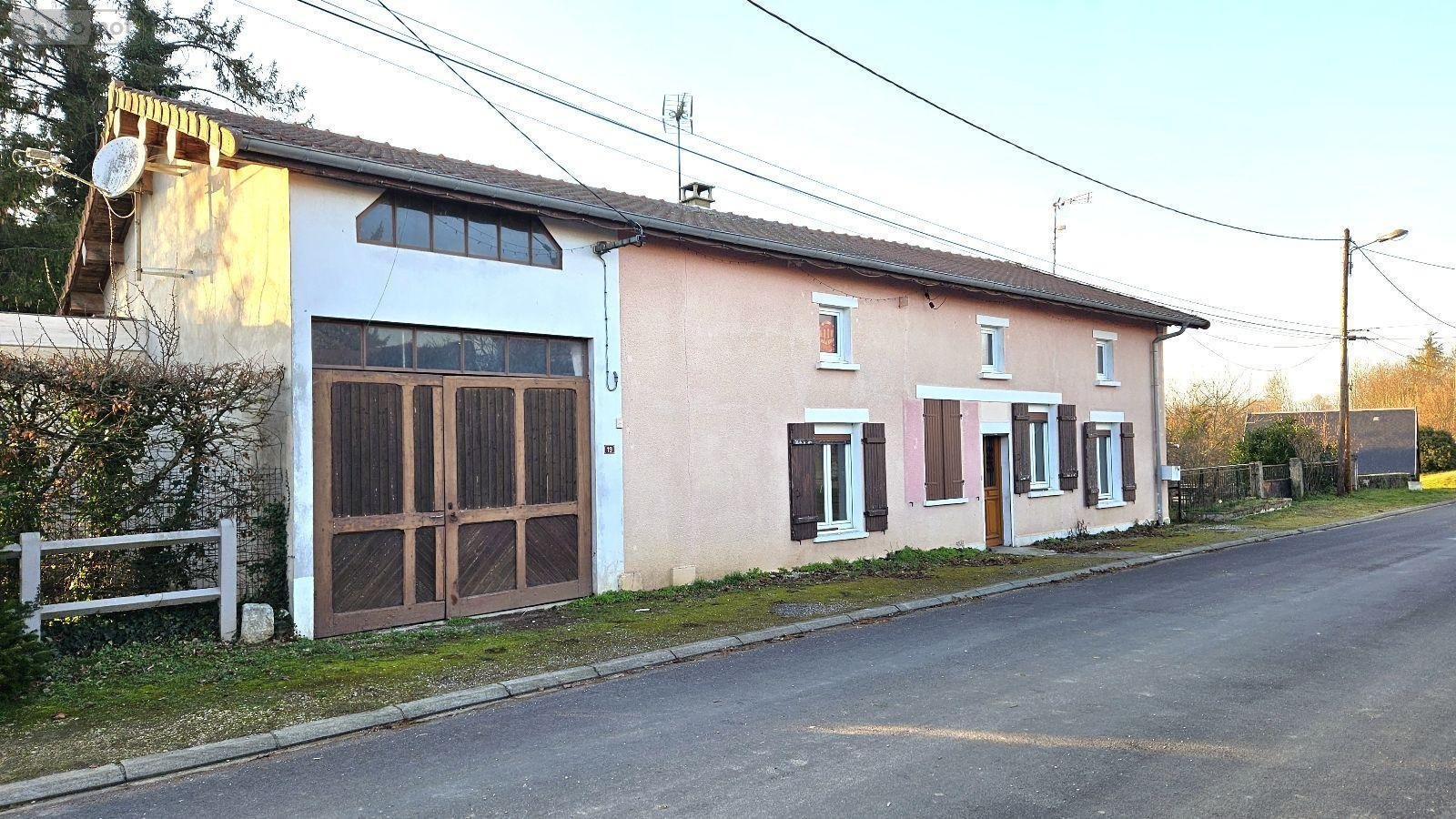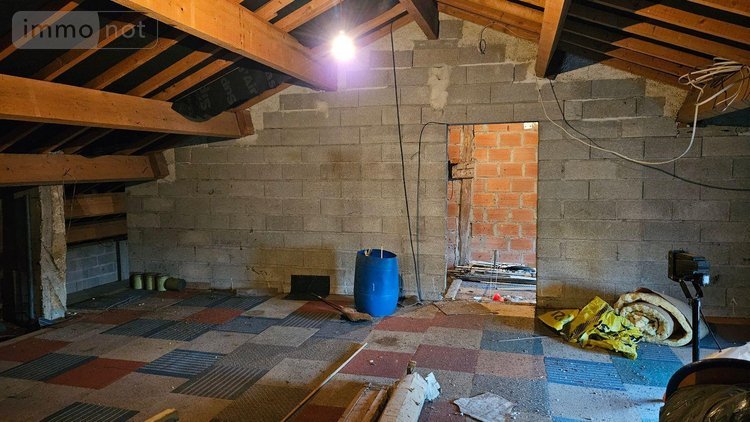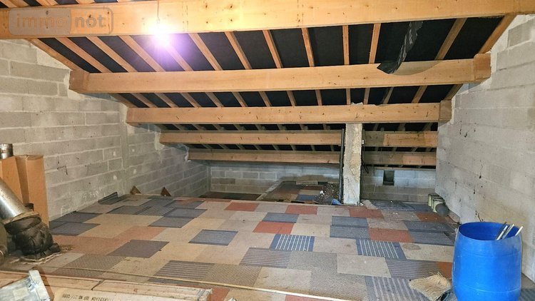 En demi-étage : un salon avec insert bois, trois chambres, une salle d'eau, WC.