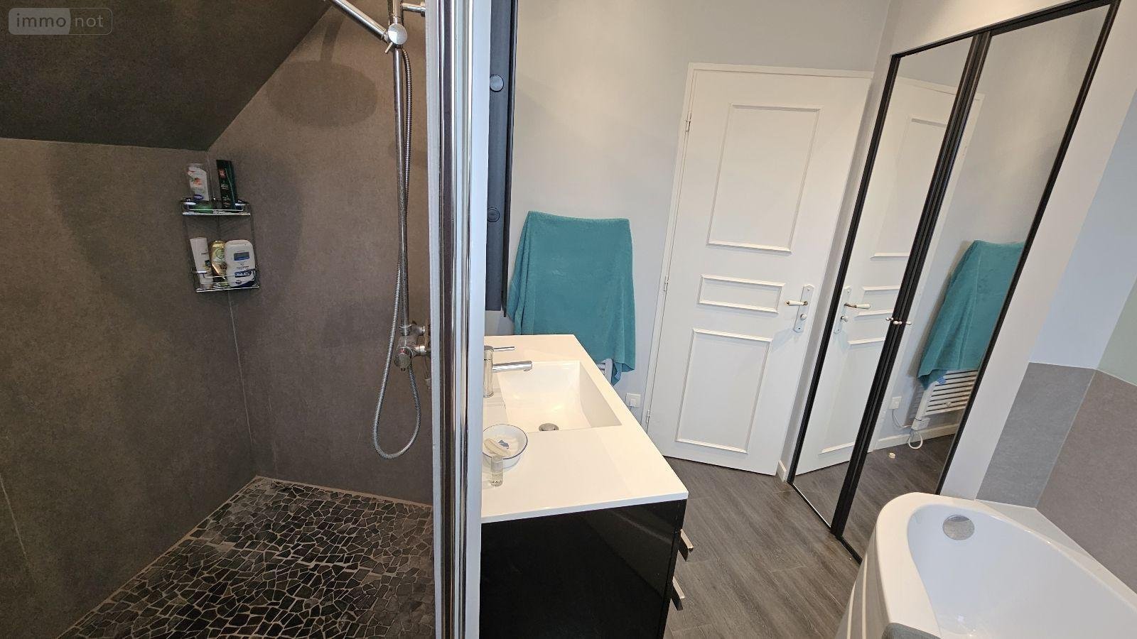 A l'étage: un grand palier, quatre chambres dont une très grande avec espace dressing aménagé, salle de bains avec douche et baignoire, WC séparés.