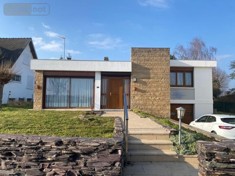 En exclusivité, A GUEUX, à deux pas du coeur du village et de tous ses services et commodités, Maison d'architecte datant de la fin des années 60 comprenant : - au rez-de-chaussée : entrée, salon-séjour avec cheminée, cuisine, véranda chauffée, - en demi palier : couloir avec grands placards, WC, 3 chambres, salle de bains, salle de douche, bureau. Sous-sol sous toute la maison comprenant garage double avec porte automatique, buanderie, chaufferie, pièce de stockage et cave. Jardinet devant, jardin derrière avec maison de jardin. Le tout sur une parcelle de terrain de 936 m². Toiture terrasse refaite il y a moins de 10 ans (isolation et étanchéité), fenêtres PVC et baies vitrées aluminium DV sur toute la partie habitation, chaudière fuel et électrique environ 15 ans, ballon électrique 300 L.