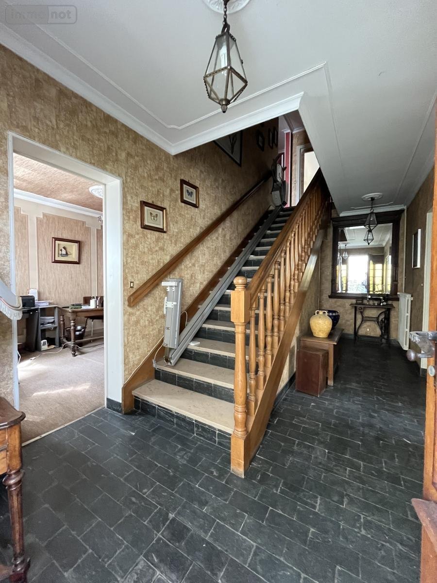 À l'étage : un vaste palier desservant un salon-séjour avec balcon, une cuisine, une salle de douches, des WC indépendants et trois chambres.
