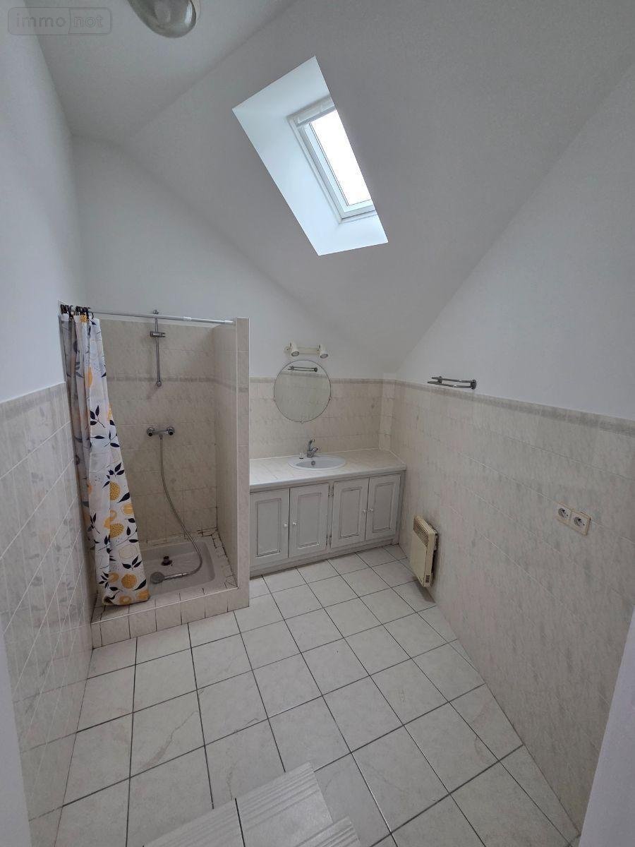 VILLAINES-LA-JUHEL (53), town center, apartment located on the first floor, with large living room open to fitted and equipped kitchen (4-burner electric hob, electric oven and extractor hood), 1 bedroom, bathroom ( + laundry area) and separate toilet. 1 attic bedroom upstairs. Energy class: E.