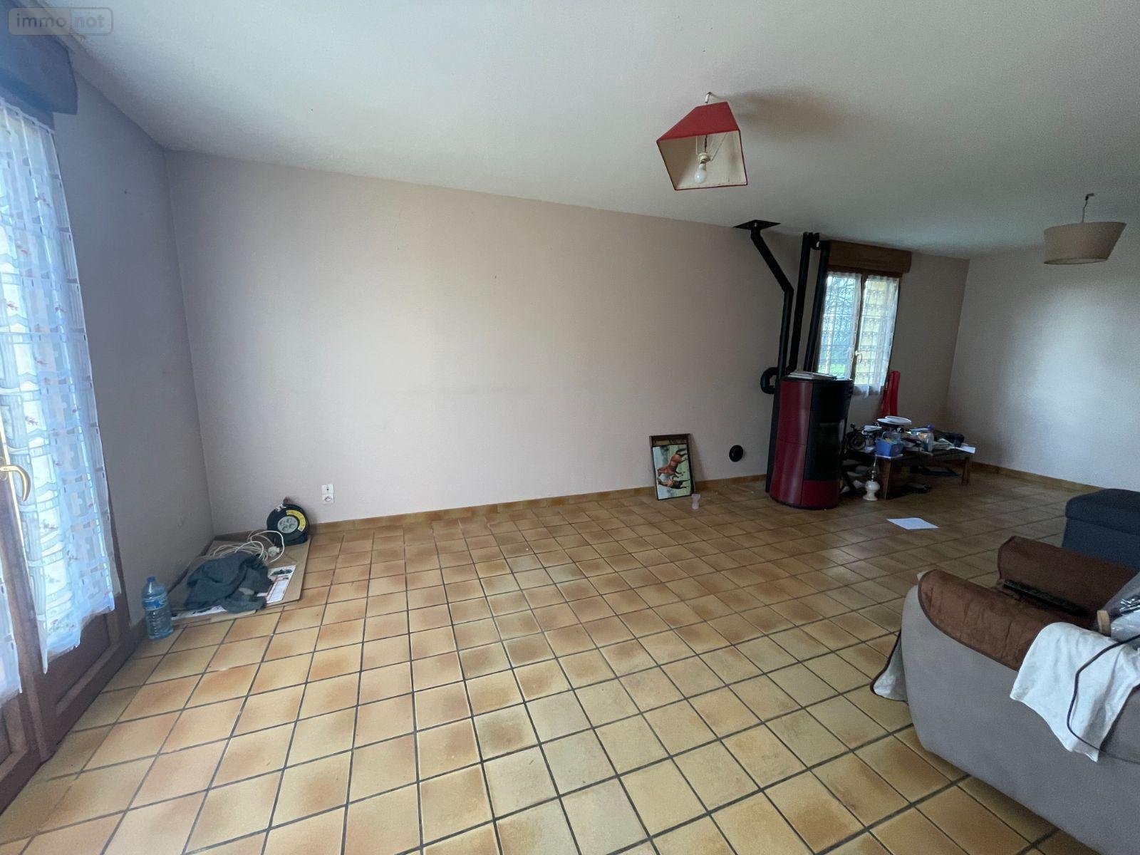 - Au rez-de-chaussée : une entrée/couloir desservant une cuisine, un salon-séjour avec poêle à granulés, trois chambres, une salle de bains et un wc séparé.