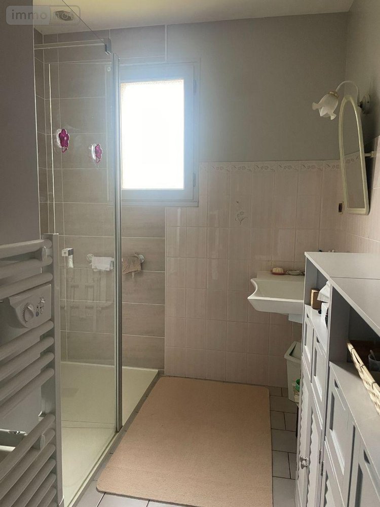 - Au rez-de-chaussée : entrée, cuisine aménagée et équipée ouverte sur salon/séjour avec insert, dégagement, une chambre, wc, salle d'eau (douche à l'italienne, sèche serviette, lavabo)