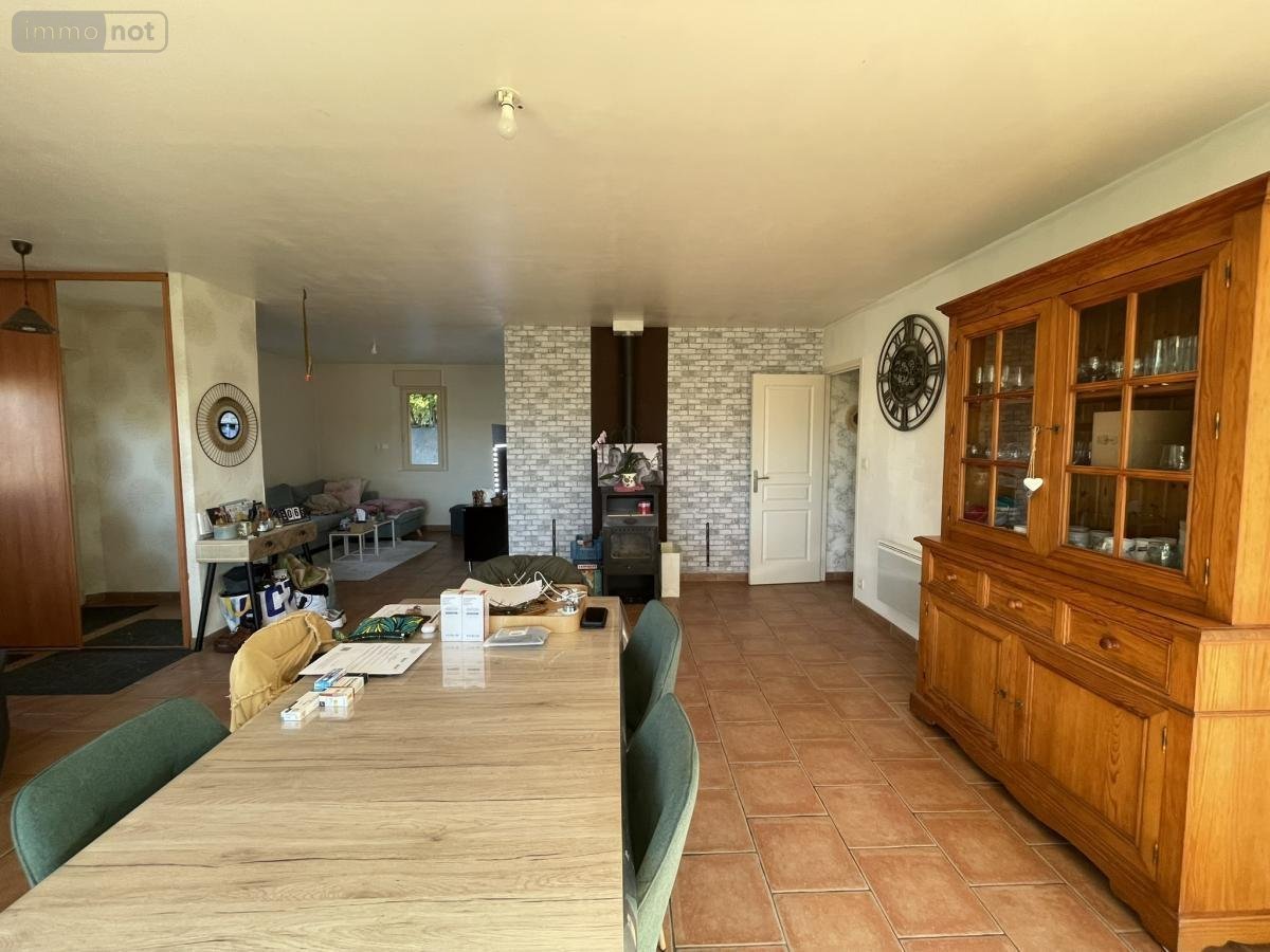Une maison de 2007 de plain pied à usage d'habitation d'une surface habitable d'environ 80 m² comprenant : une entrée avec placard, une cuisine ouverte sur le séjour avec poêle à bois, un salon, un dégagement avec placard desservant une buanderie, un w.c, une salle d'eau, trois chambres avec placard (12.01 m², 8.46 m² et 8.57m²).