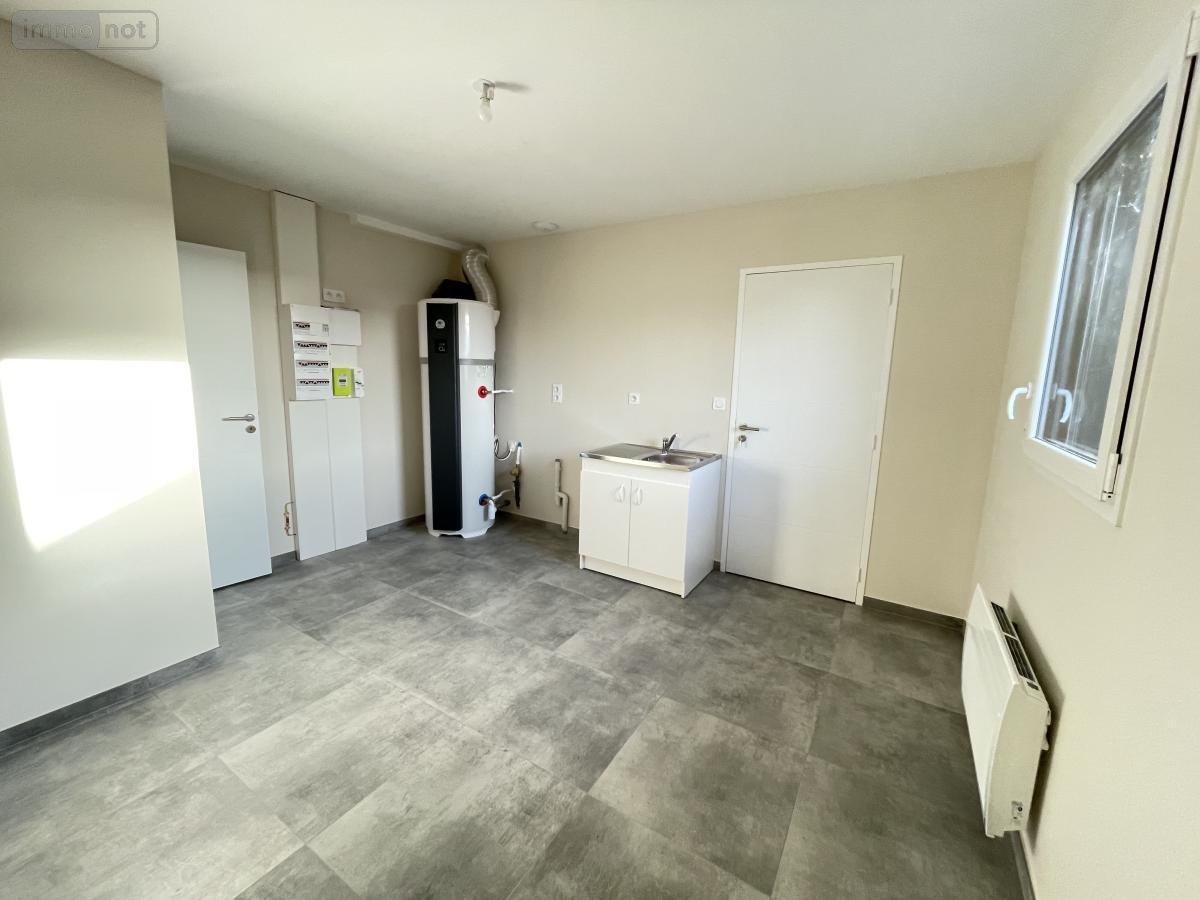- au rez-de-chaussée; un salon/séjour avec une cuisine aménagée et équipée (four, plaque, hotte) un cellier, un dégagement desservant une chambre, une salle d'eau, un w.c