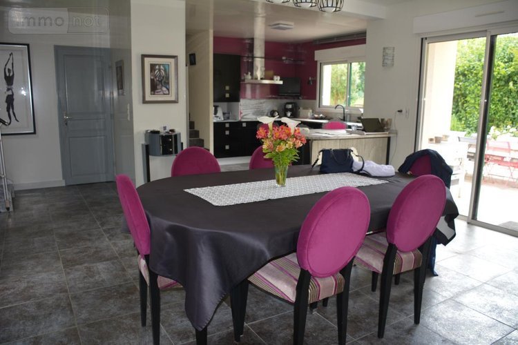 Maison comprenant : une entrée donnant sur un grand salon-salle à manger lumineux, une cuisine ouverte équipée + placards, accès extérieur vers la terrasse, un wc, un escalier partant de la cuisine desservant : un salon-bureau, une chambre avec salle-d 'eau, un wc, avec accès allant à la mezzanine comprenant : un wc, une salle de bain, une chambre.