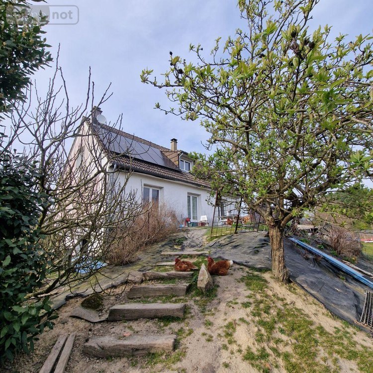 La maison sur sous-sol comprend une entrée, une cuisine, une salle à manger, couloir m, deux chambres, wc indépendants et un grenier pouvant être aménagé.