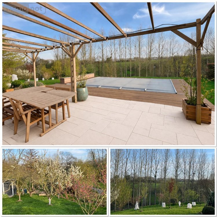 À l'extérieur, le cadre bucolique révèle tout son charme : un jardin soigné, arboré avec beaucoup de fruitiers, une agréable terrasse avec une pergola en bois, et une piscine extérieure créent un véritable espace de vie tourné vers la nature, idéal pour des moments privilégiés en famille ou entre amis.