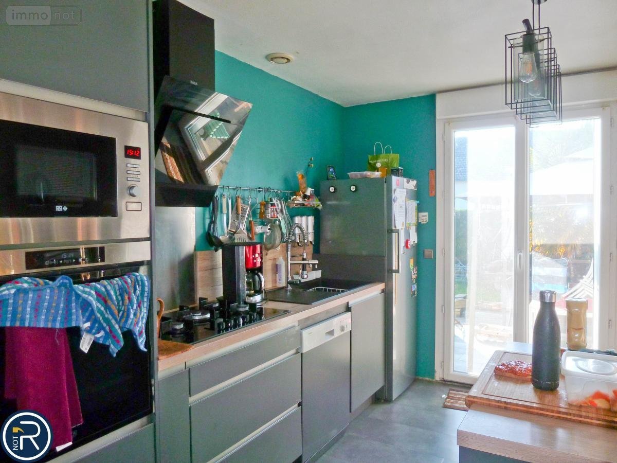 Un pavillon sur sous-sol enterré et comprenant de plain-pied : entrée ouverte sur séjour/salon, cuisine aménagée et équipée avec accès à une terrasse dallée, dégagement, trois chambres dont une avec placard, salle d'eau, w-c.