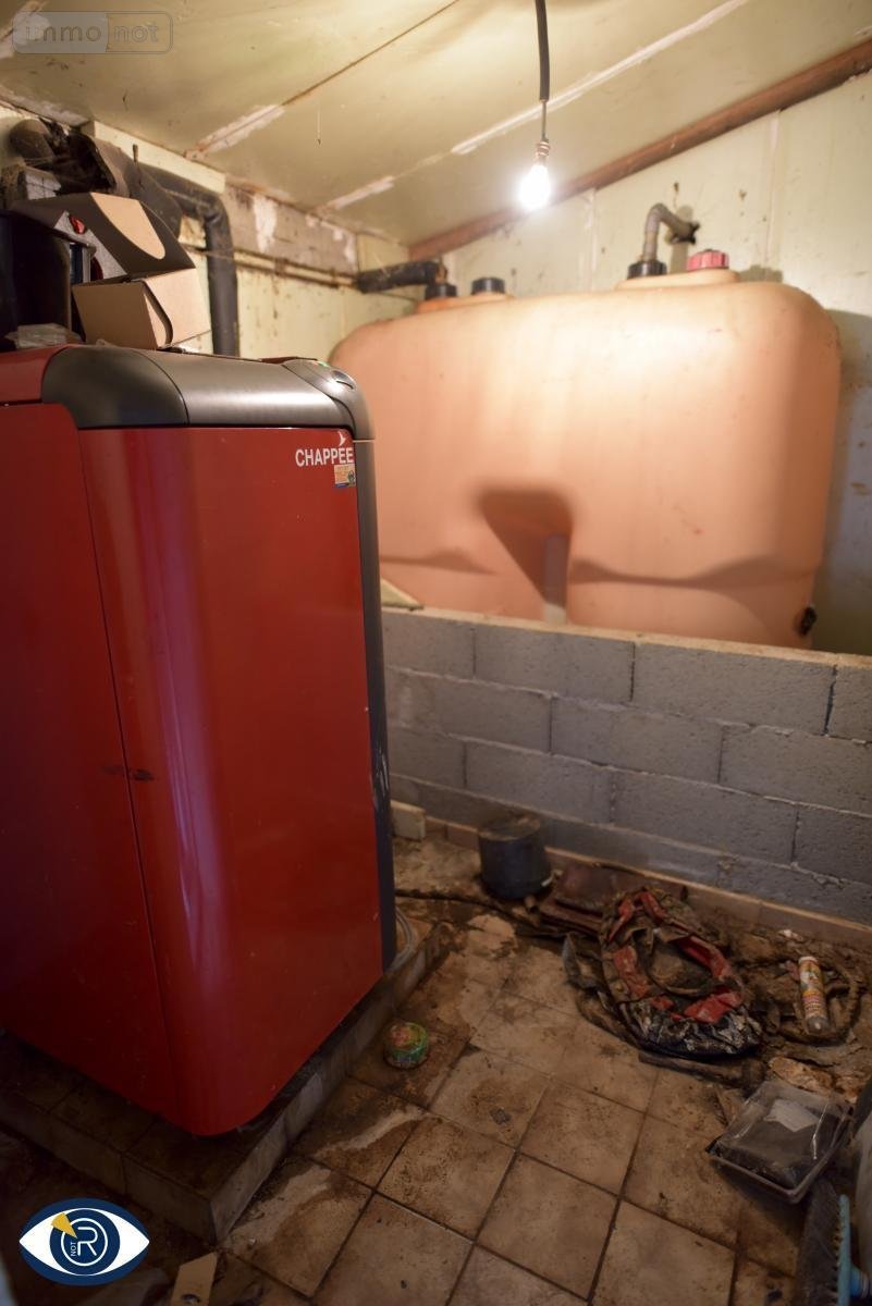 Garage en parpaing avec chaufferie, terre au sol.