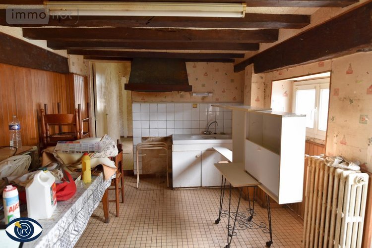 Une maison ancienne en bord de route comprenant de plain pied cuisine, séjour, 3 chambres, salle d'eau, WC, dégagement,