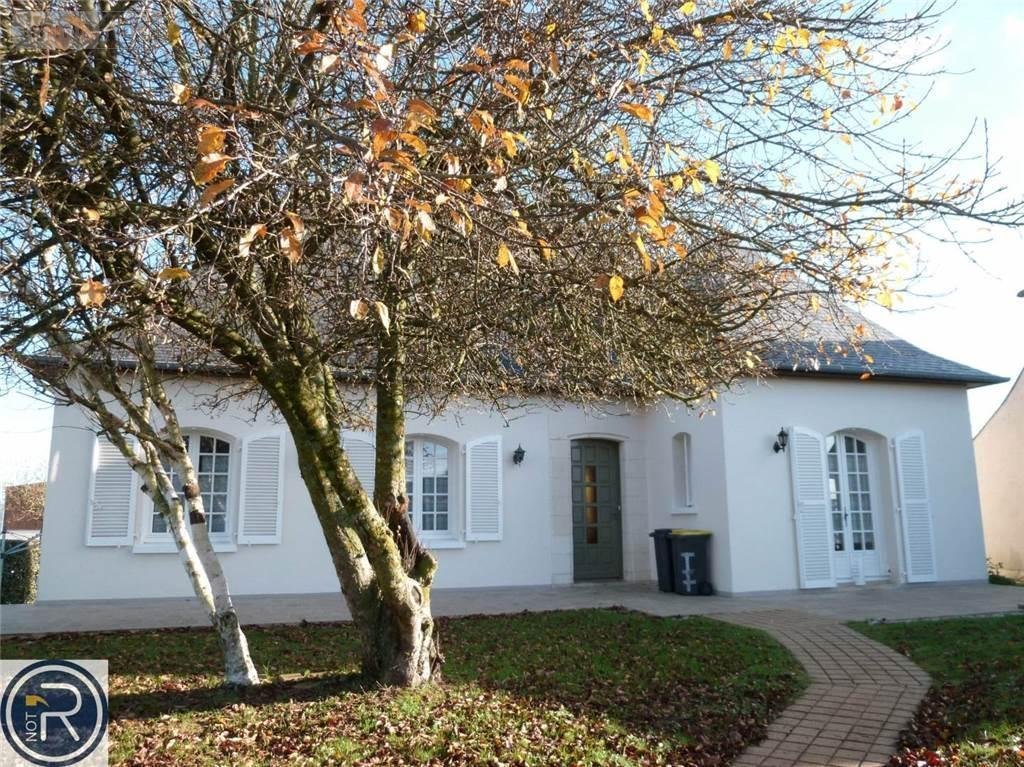 LOUVENE - Pavillon sur sous-sol enterré et comprenant de plain-pied : entrée, séjour/salon avec cheminée insert, cuisine aménagée et équipée (four, plaque cuisson gaz, hotte, lave-vaisselle), dégagement, trois chambres, salle de bains (douche et baignoire), w-c.