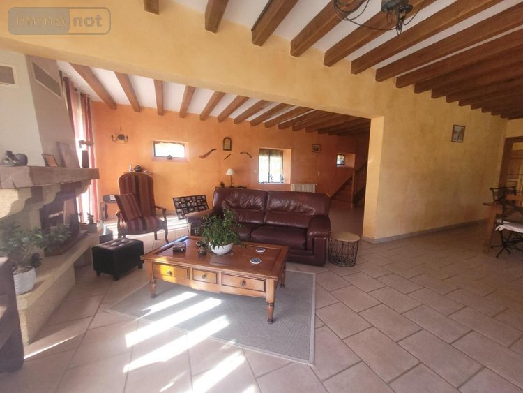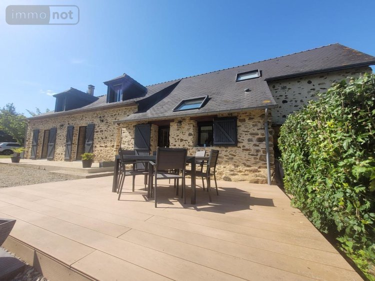 L'HUISSERIE - EN CAMPAGNE - MAISON EN PIERRE de 180 m² offrant entrée, salon/séjour avec insert, cuisine aménagée/équipée, salle à manger, chambre, salle d'eau, wc et arrière cuisine. A l'étage : dégagement, quatre chambres, salle de bains, dressing, wc, grenier. Terrain de 7300 m² avec mare et puits. Garage en Pierre et carport.