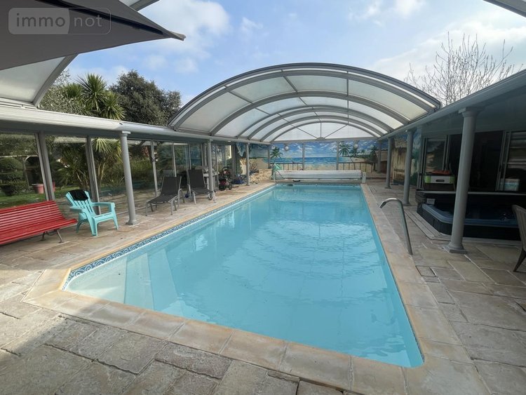 - Une extension comprenant une piscine couverte, une cuisine d'été, un salon d'hiver, une salle de sport (avec ses équipements), une salle de douche, un w-c, un sauna, un jacuzzi, un bureau et un vestiaire. Le tout sur un terrain paysagé de 1235m2 avec une serre et une volière
