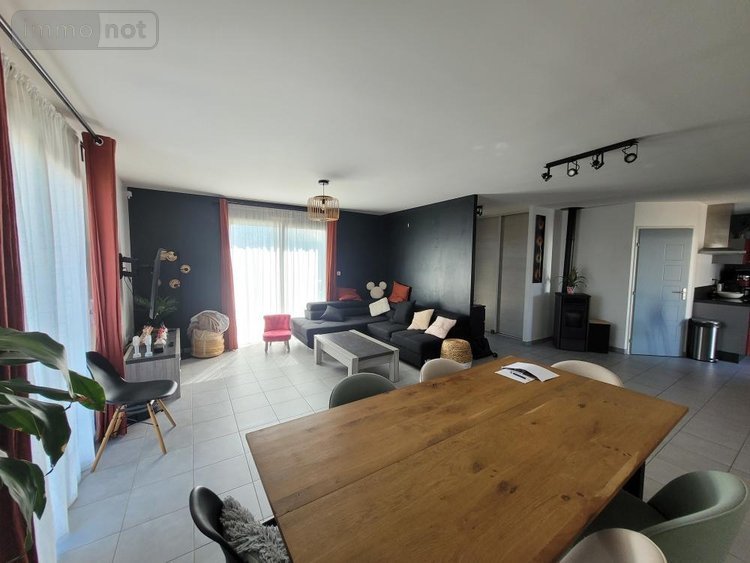 PAVILLON PLAIN-PIED INTEGRAL de 2014 offrant salon/séjour poêle à pellet, cuisine aménagée/équipée, trois chambres, salle d'eau, buanderie. Garage. Terrain clos de 589 m²