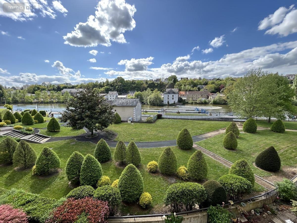 - entrée avec placard, dégagement, séjour avec balcon vue Mayenne, cuisine, trois chambres, salle de bains, wc.
