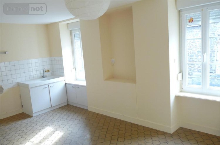 A louer à Gorron(53), centre-ville, un appartement comprenant une entrée. Au 1er étage, une cuisine, salle à manger-salon et W.C. Au 2e étage, deux chambres, salle de bains, un débarras et W.C. Cour.