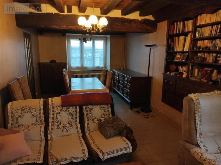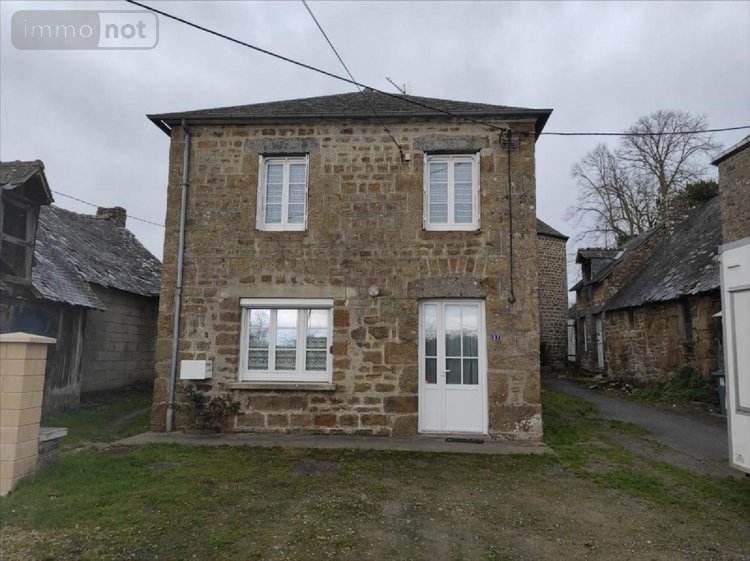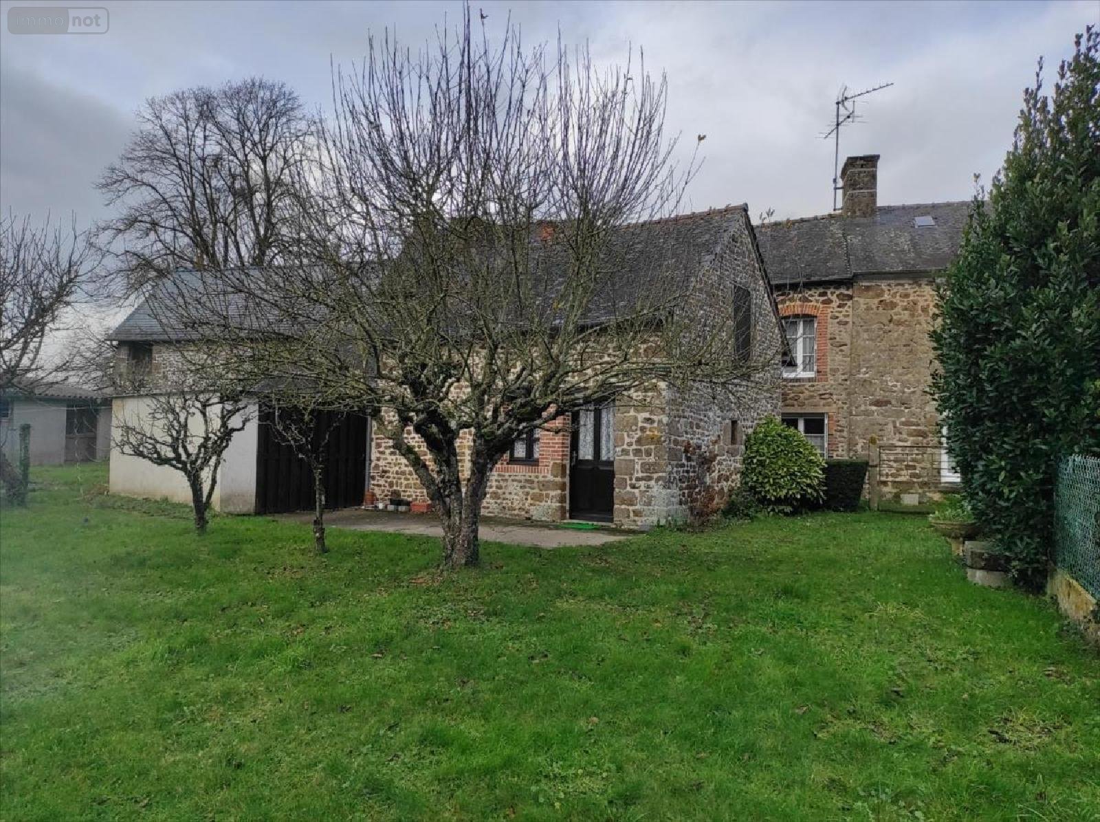 A vendre à Cigné(53), une maison en pierres comprenant une entrée, une cuisine(13.64 m²), salle à manger-salon(27 m²) avec cheminée, W.C, salle d'eau avec W.C, débarras et chaufferie. A l'étage, palier, trois grandes chambres, salle de bains, W.C et ateliers. Deux greniers. Une dépendance aménagée en pierres comprenant un séjour(20.84 m²) avec cheminée et grenier. Accolé, un appentis et une cave. Deux cabanons avec terrain et jardin. Cour. Garages(36.31 m²) avec un autre jardin.