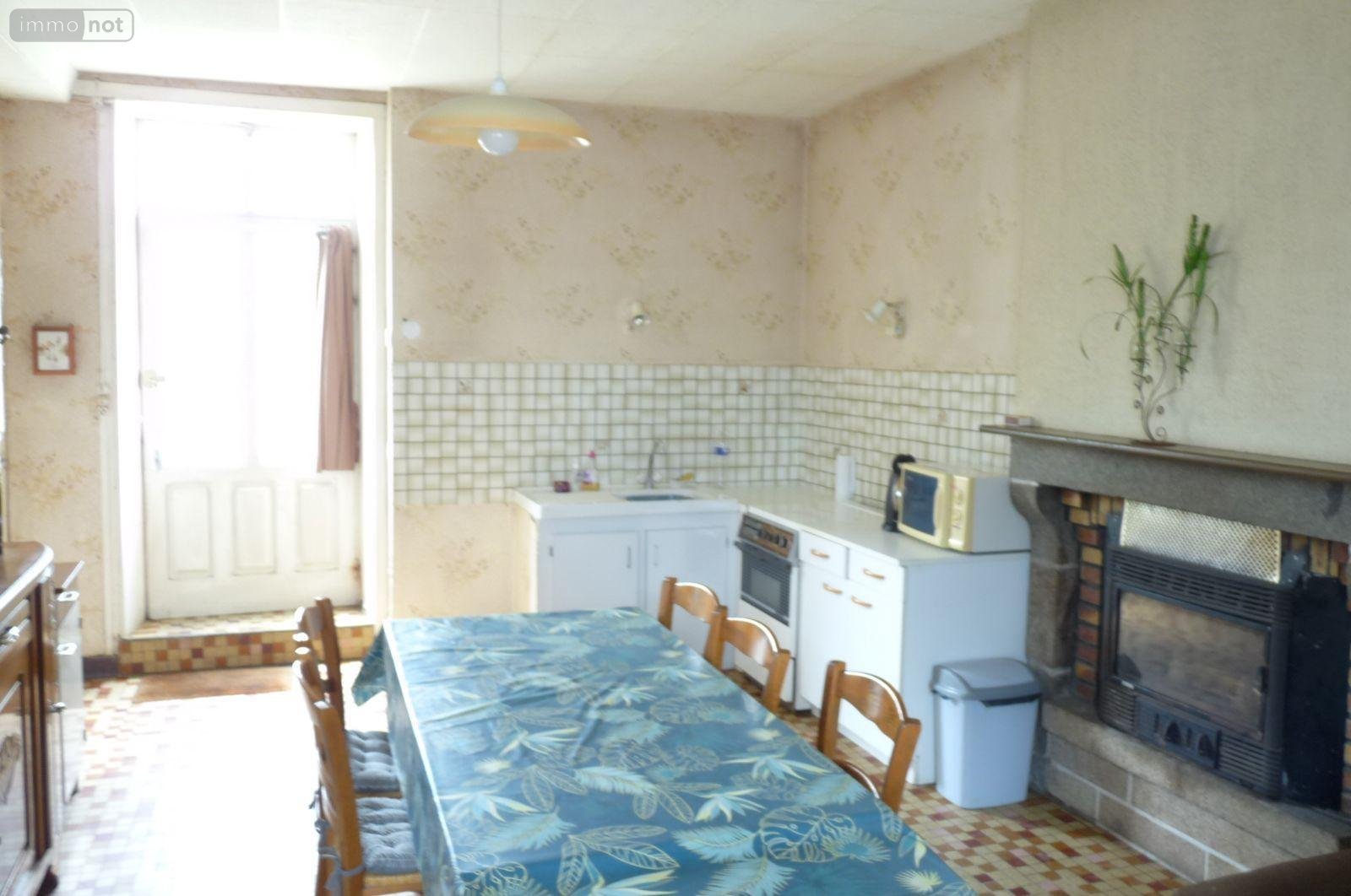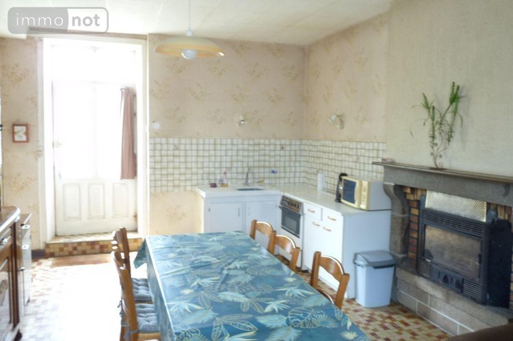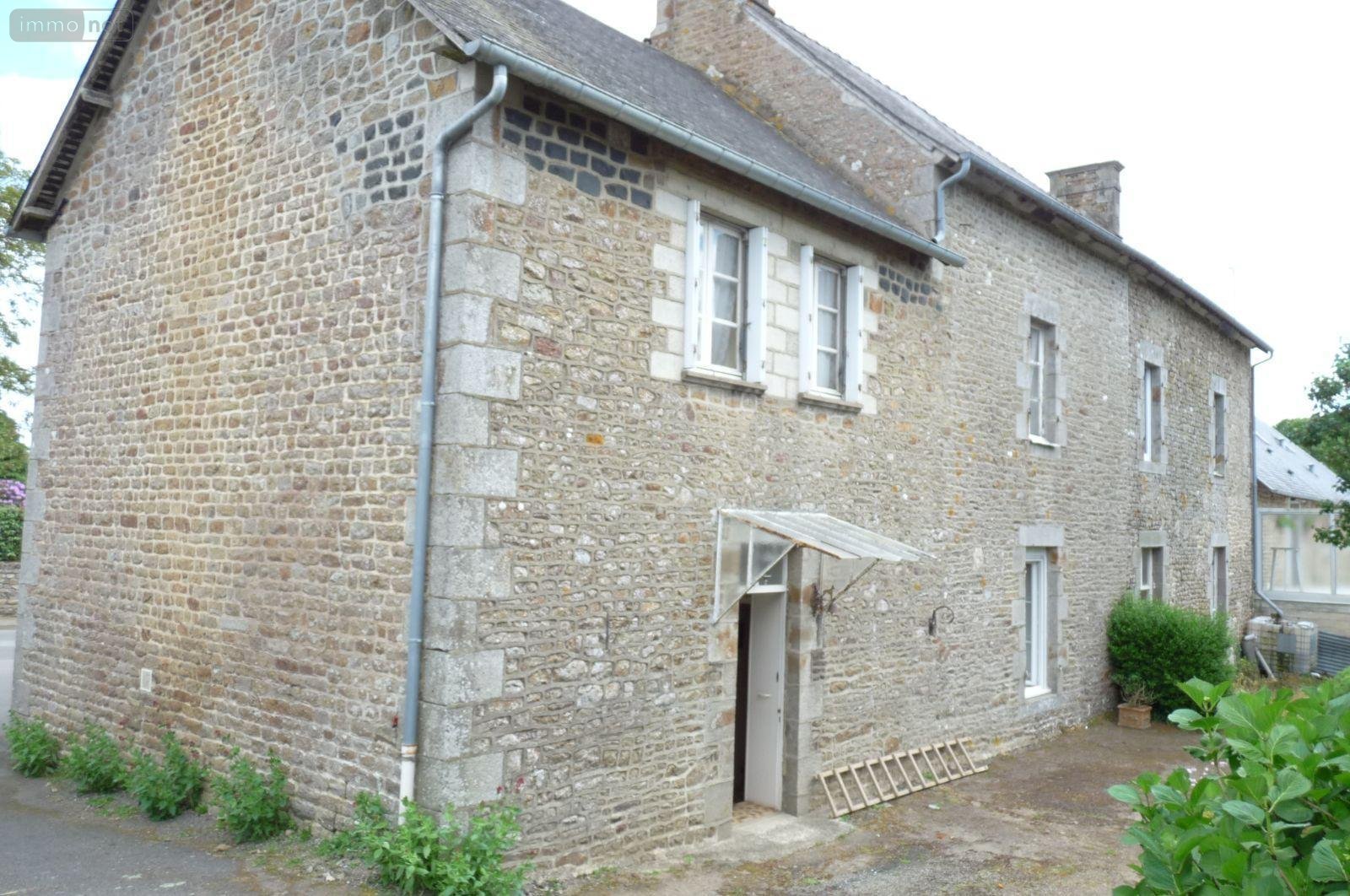 A vendre à VIEUVY(53), une maison en pierres comprenant une entrée, cuisine(21.58 m²) avec cheminée(insert), salle à manger-salon(30.26 m²) avec cheminée, salle d'eau et W.C. A l'étage, palier, cinq chambres, salle de bains avec W.C. Grenier.