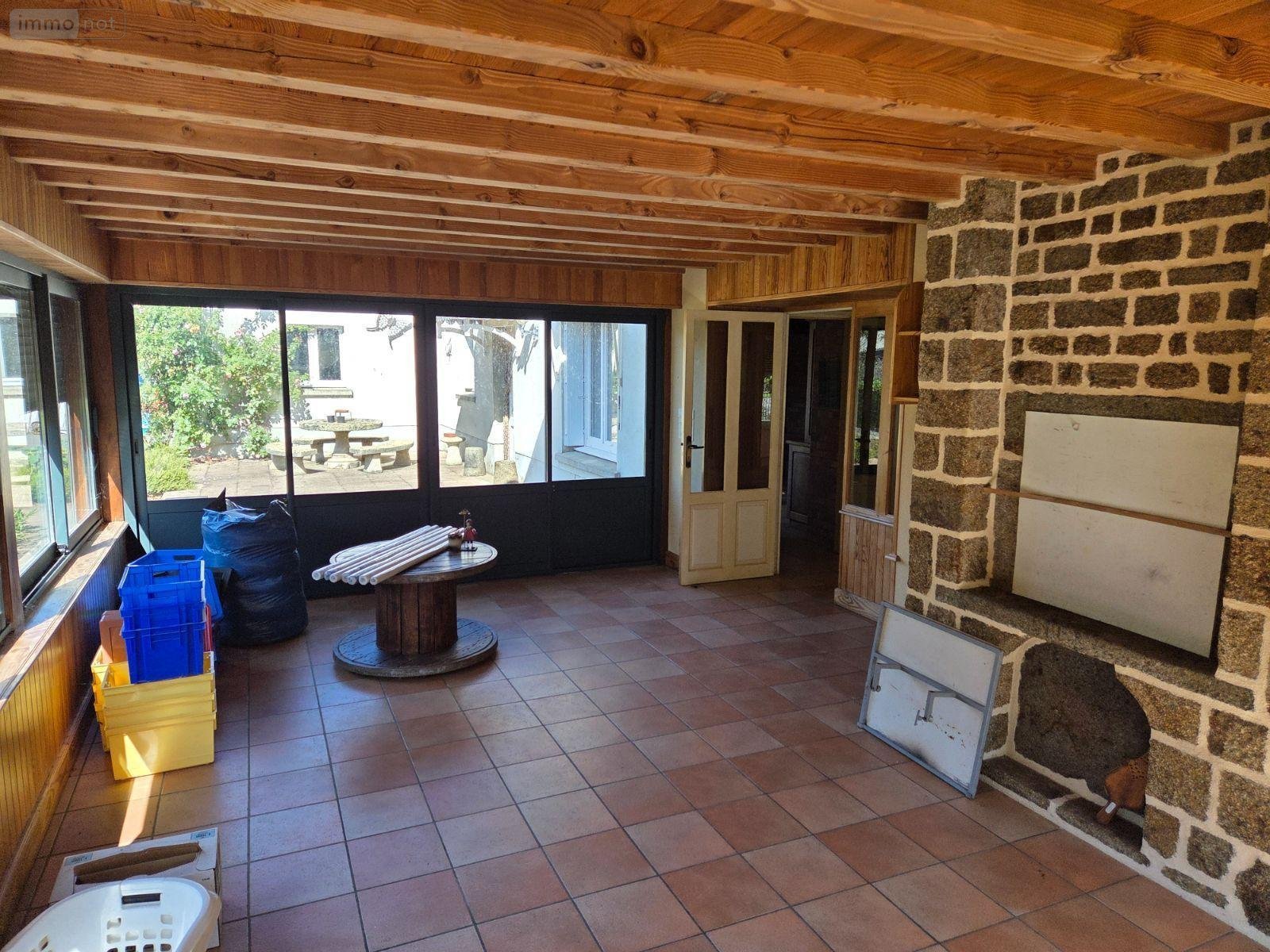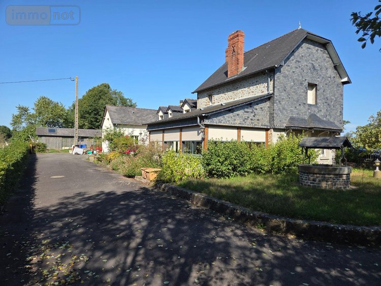 A vendre à Ambrières les vallées(53), en campagne et proche de la voie verte, une maison en pierres comprenant une cuisine aménagée et équipée avec cheminée, salle à manger-salon, véranda avec cheminée, arrière-cuisine, salle d'eau, WC, cave enterrée, garage et chaufferie. A l'étage, un palier, trois chambres, un bureau, salle d'eau et deux W.C. Grenier.