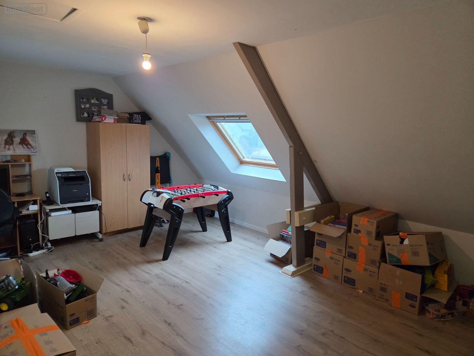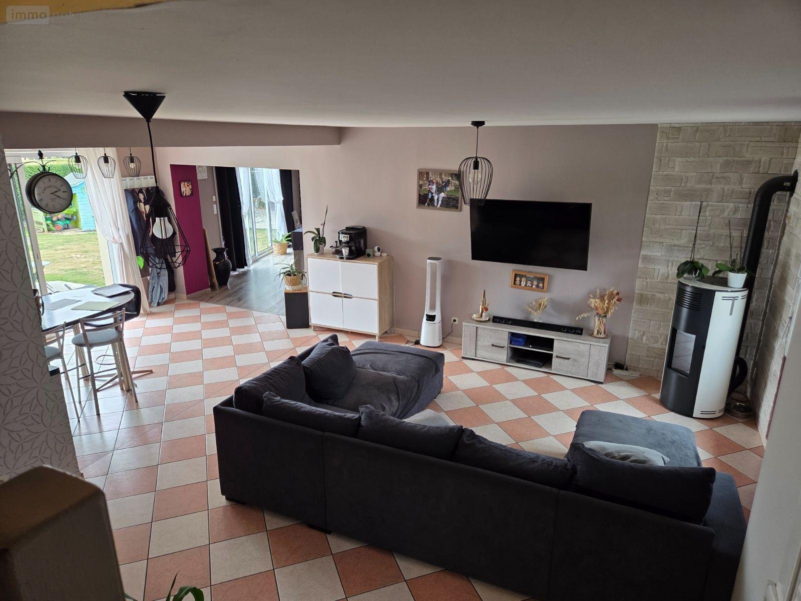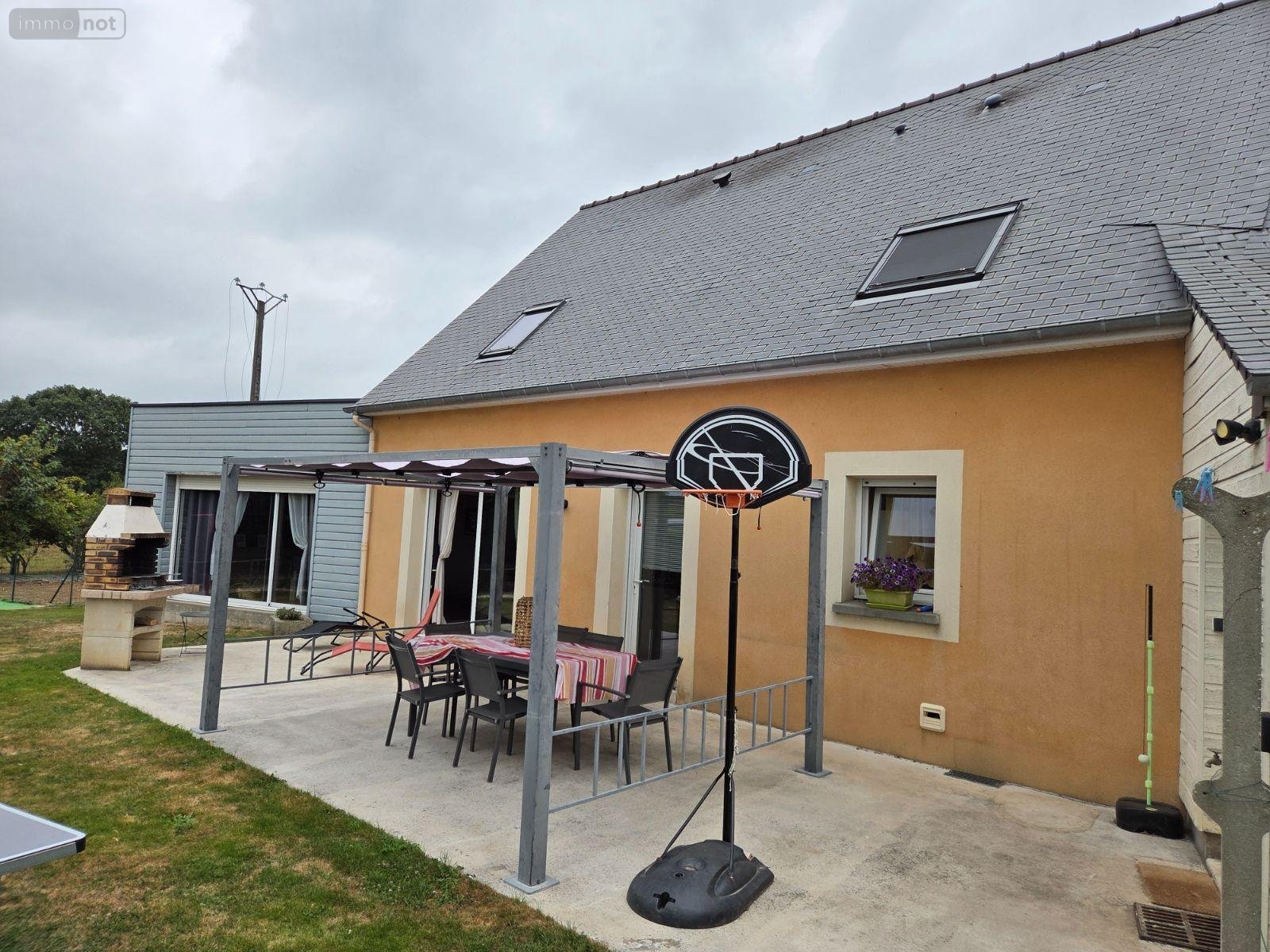 A vendre à DESERTINES(53), une maison d'habitation comprenant une entrée ouverte sur la cuisine aménagée et équipée-salle à manger-salon avec poêle à granulés(67 m²), deux chambres avec salle d'eau privative, W.C, cellier-buanderie et garage(55 m²). A l'étage, mezzanine, deux chambres et une salle de bains avec W.C. Grenier(27 m²) au-dessus du garage. Terrasse carrelée. Cabanon. Serre. Jardin....