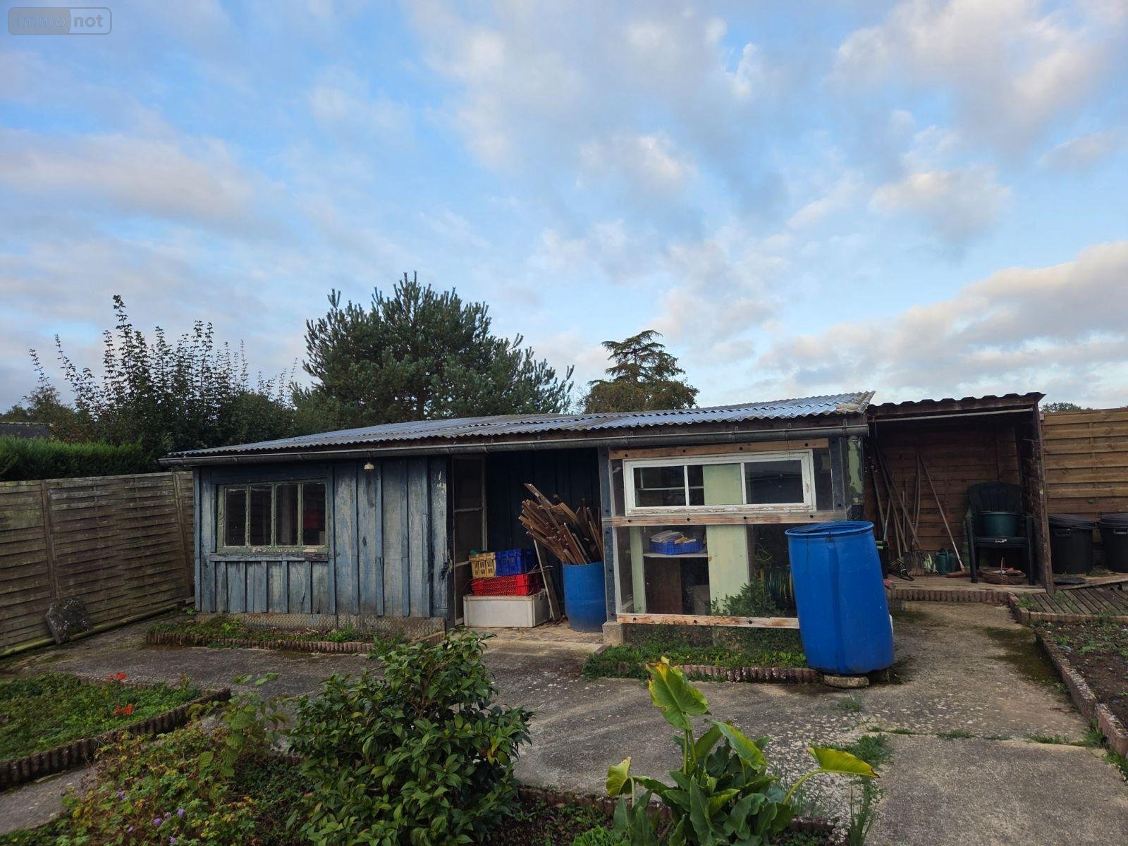Terrasse et abri de jardin sur terrain clos.