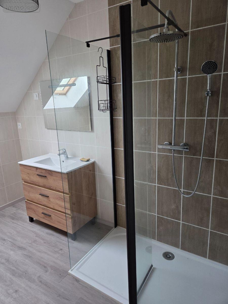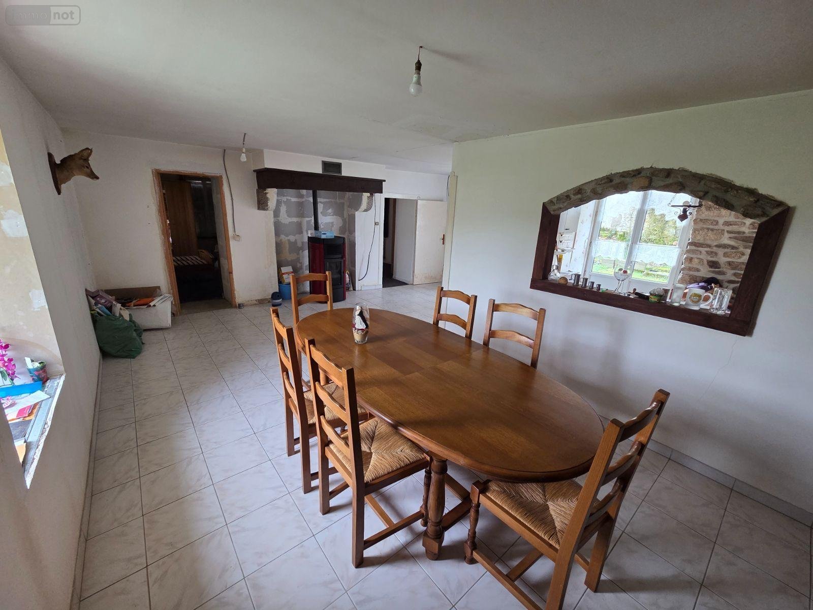 - au rez-de-chaussée : cuisine, salle à manger - salon avec poêle à pellets, deux chambres, arrière-cuisine, salle d'eau - wc.