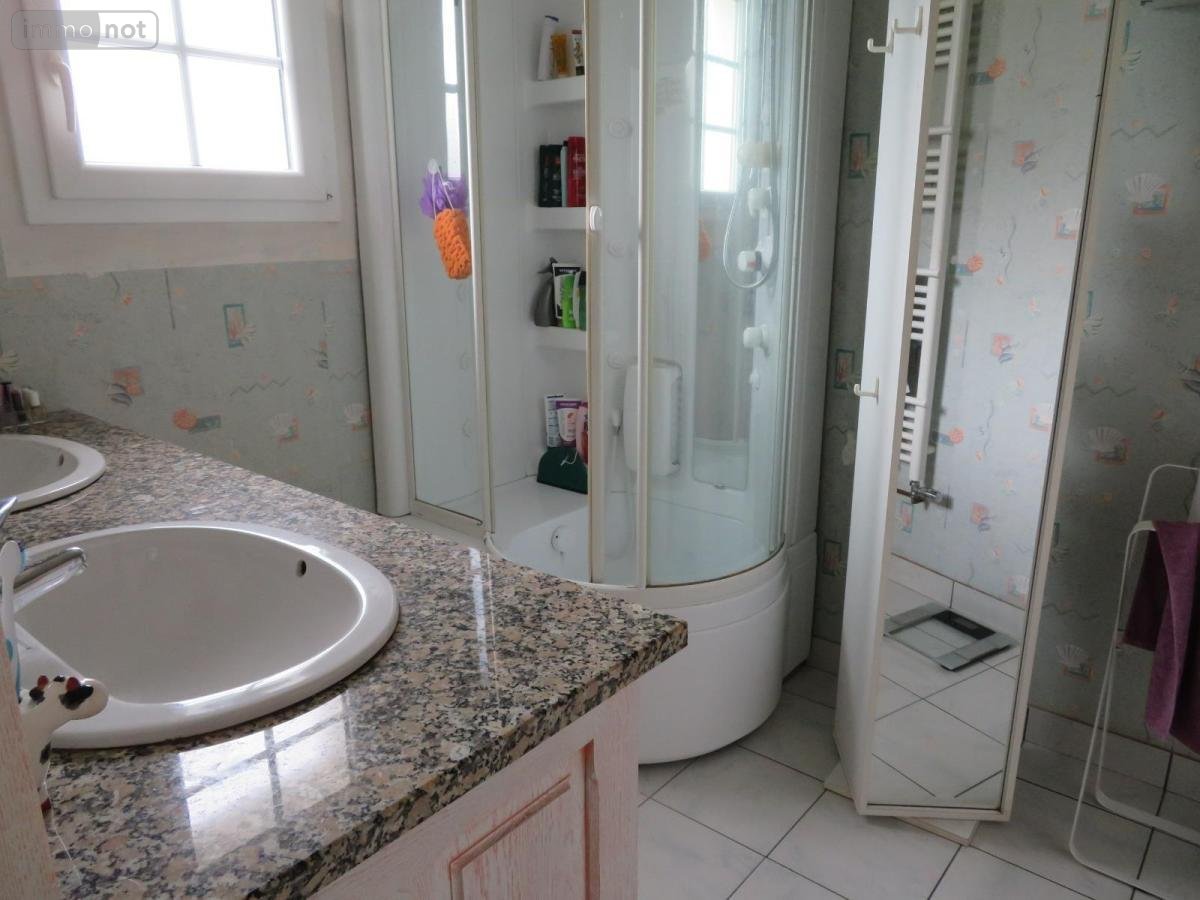 A l'étage : Palier, trois chambres mansardées, salle d'eau avec wc.