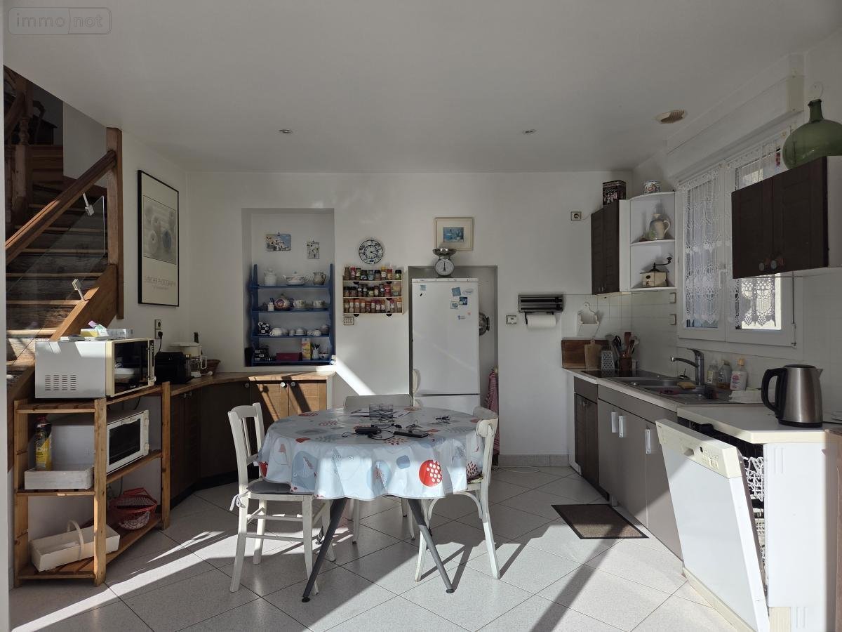 Une maison de 136m² habitables, comprenant au rez-de-chaussée une entrée sur un salon séjour avec poêle à bois et une cuisine ouverte, avec une baie vitrée donnant accès à la terrasse et au jardin, une chambre avec salle d'eau privative, une pièce supplémentaire (chambre ou bureau) et une seconde entrée avec dégagement.