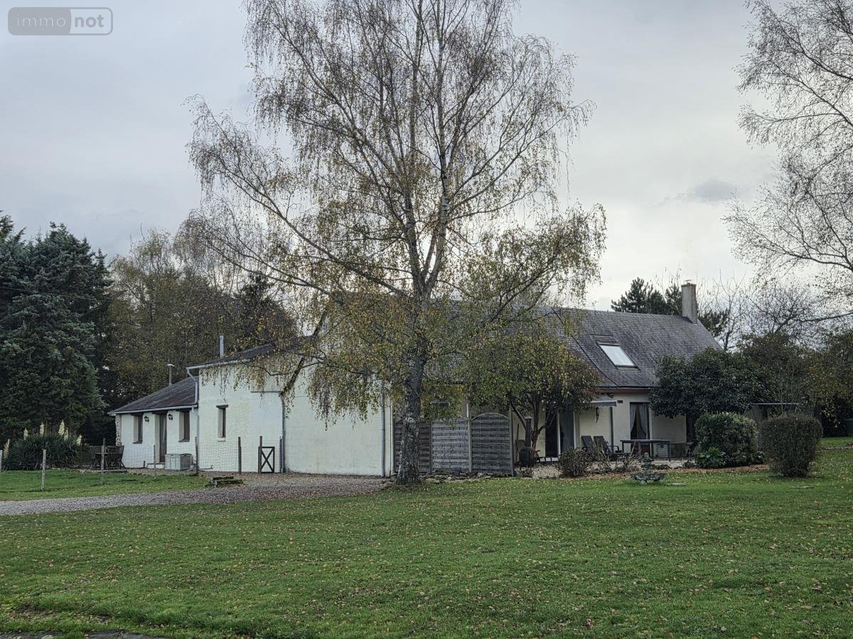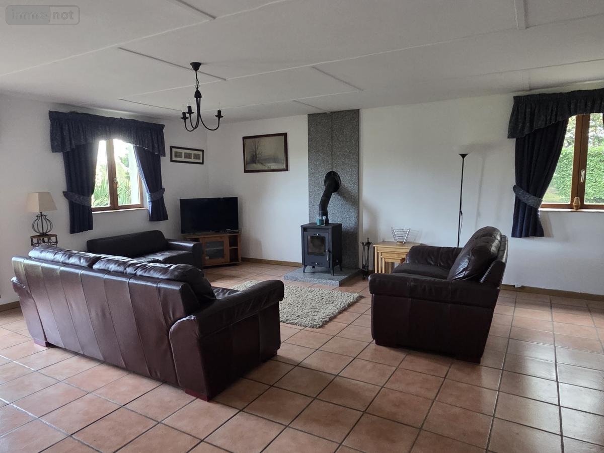 Au coeur d'un terrain de 3.3 ha, avec un plan d'eau de 12.400 m², une propriété comprenant une longère de 130m² habitables avec une entrée, un salon séjour avec poêle à bois, une cuisine ouverte aménagée et équipée, une salle à manger, une chambre, un dressing et une salle d'eau avec WC. À l'étage : un palier, une chambre avec baignoire et WC, une autre chambre avec salle d'eau et WC, et un grenier.