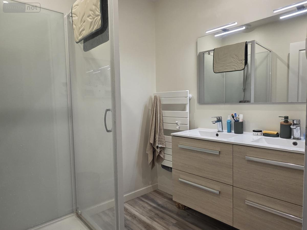 Au rez-de-chaussée : une entrée, un séjour avec cuisine ouverte aménagée et équipée, un salon, une chambre, une salle d'eau, un dégagement avec buanderie et WC.