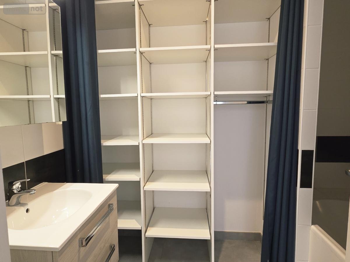 Une entrée donnant sur un salon-séjour, une cuisine ouverte aménagée, un cellier, une première chambre avec placards et salle d'eau privative, un dégagement desservant deux chambres supplémentaires avec placards et une salle de bains avec placards, WC.