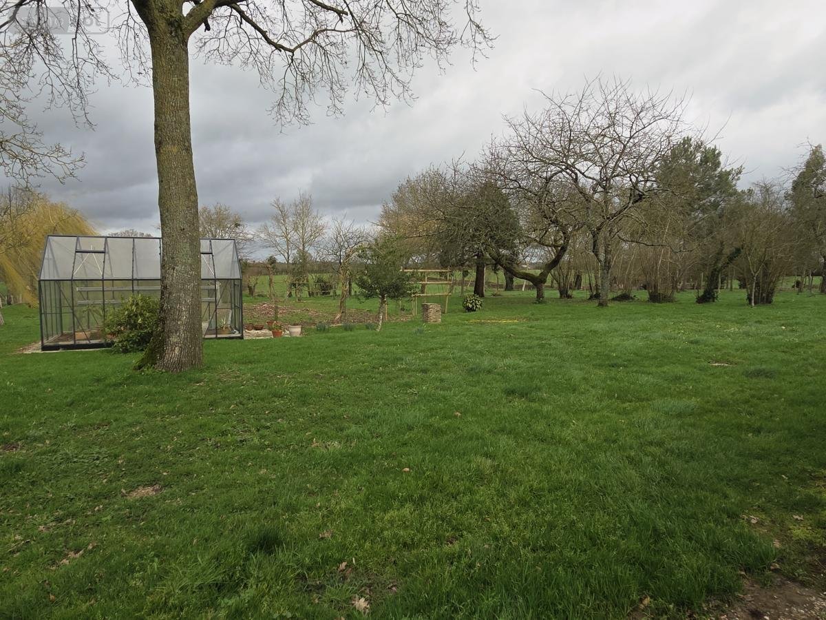 L'ensemble sur un jardin arboré, avec une serre et un bassin.