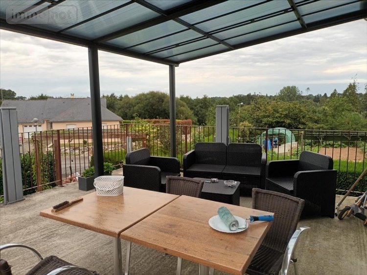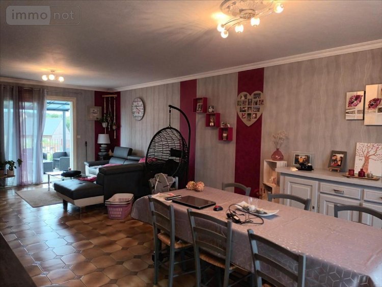 - en rez de chaussée : cuisine aménagée ouverte sur séjour-salon avec poêle à pellets et accès terrasse, 3 chambres, salle d'eau, WC et dégagement;