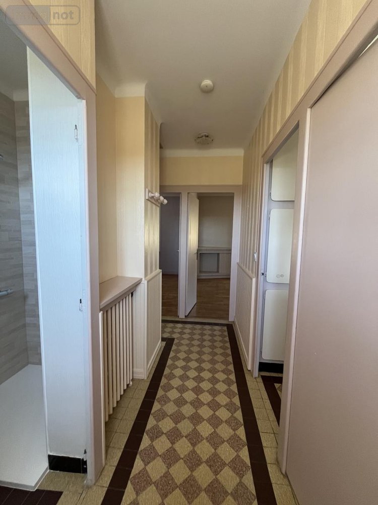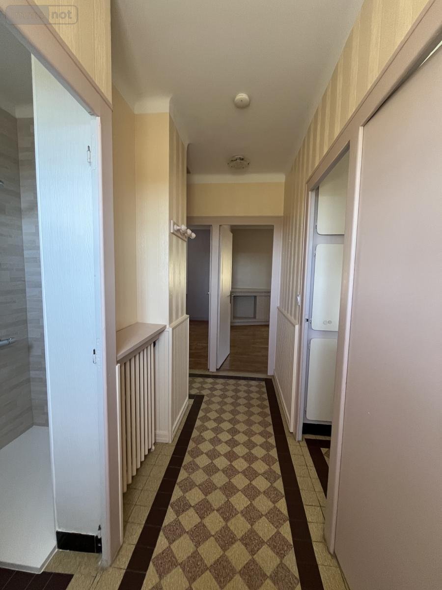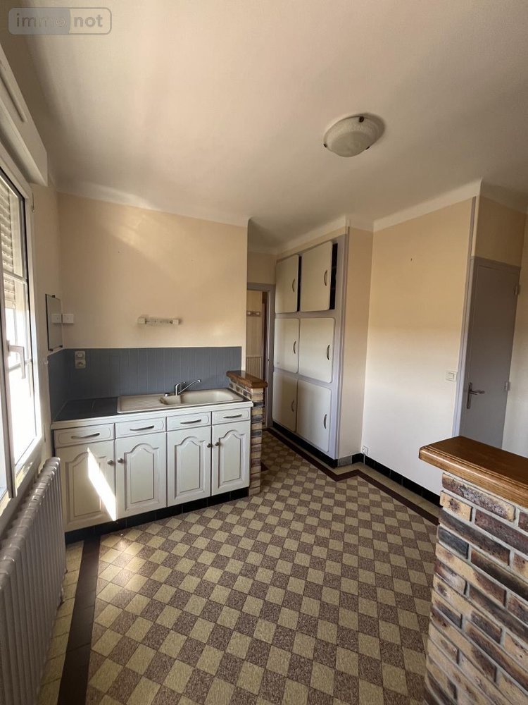 Entrée et dégagement avec placard penderie, toilette, salle d'eau, trois chambres, séjour-salon avec cheminée, coin cuisine avec bar et placards