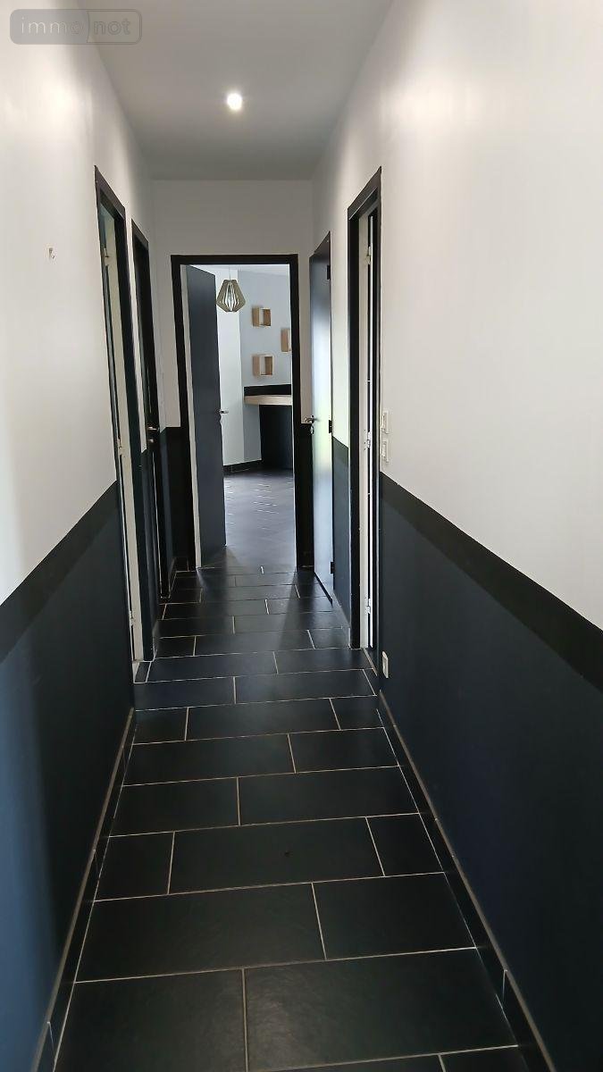 Elle se compose d'une spacieuse pièce de vie lumineuse avec poêle à bois ouverte sur une cuisine aménagée et équipée, 4 chambres, salle de bains (balnéo), WC séparés ainsi qu'un garage attenant.