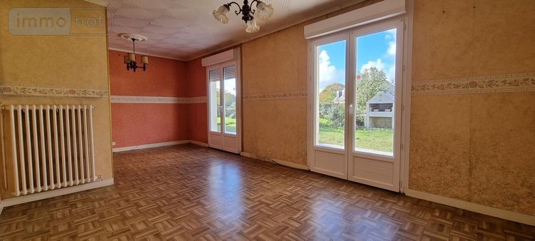 Proche de la gare de Questembert, venez découvrir cette maison des années 70 sur un terrain plat entièrement constructible de 2140 m2 (division possible). Vous y retrouverez, au rez-de-chaussée, une entrée, un couloir desservant un séjour-salon donnant accès à une terrasse exposée sud-ouest, une cuisine, deux chambres, une salle de bains et un wc. A l'étage, deux chambres et deux greniers. Garage attenant. Chauffage au fioul et tout à l'égout. Travaux à prévoir. Très beau potentiel !