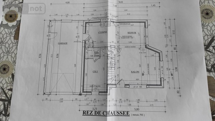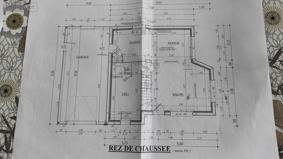 Rdc : séjour-salon avec poêle à pellets, cuisine ouverte aménagée, une chambre avec douche, WC, une salle de jeux.