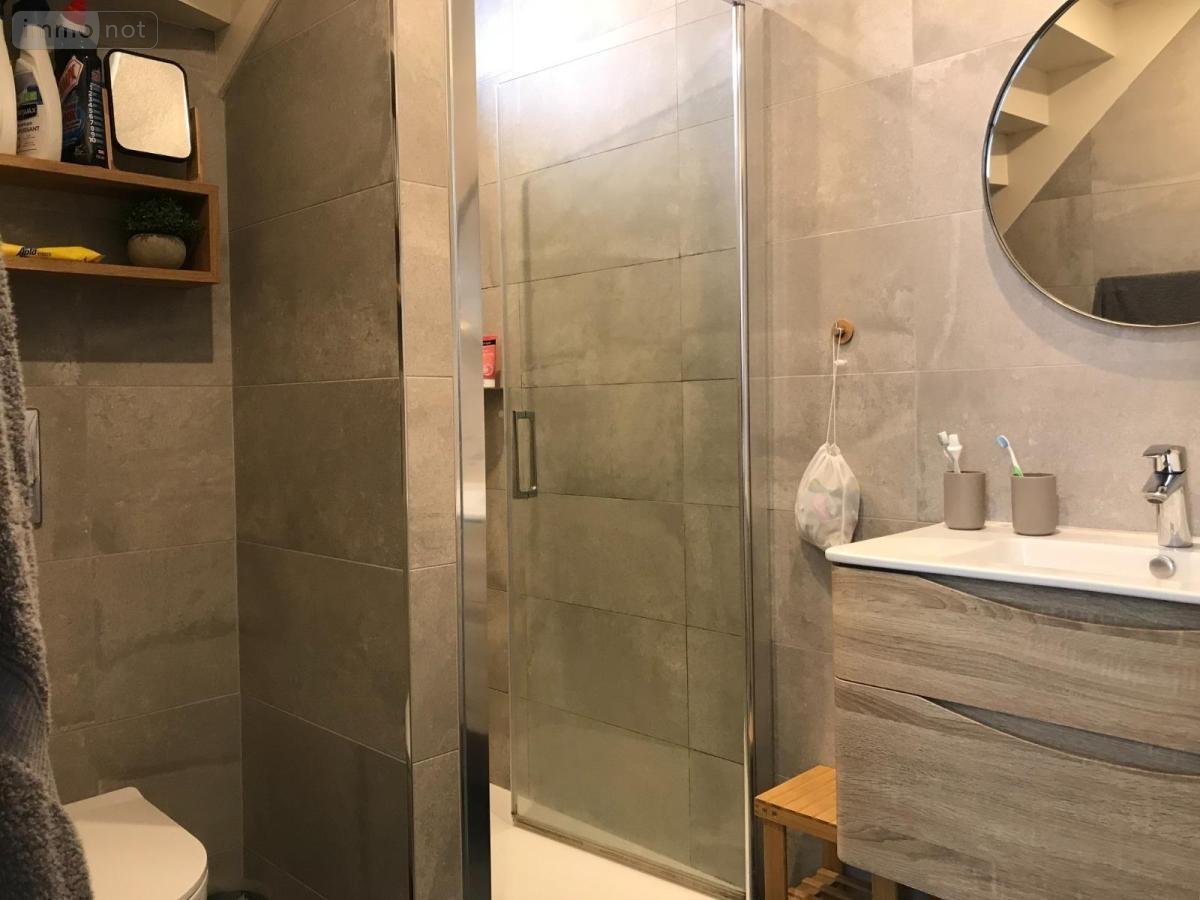 A Vendre à Locmiquélic, proche rivages du Loch, maison rénovée en 2021, 110m2 habitable sur terrain 275m2, comprenant: RDC: entrée, séjour avec cuisine ouverte, dégagement, chambre avec placard, salle d'eau/WC. 1er: dégagement salle d'eau/WC, 3 chambres avec placards. 2nd: "studio". Chauffage électrique, véranda, buanderie / cellier, abris de jardin.