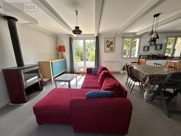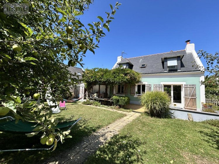 BELLE ILE EN MER - Située à moins de 2km du bourg de LE PALAIS, maison comprenant au rez-de-chaussée : entrée ouverte, W.C., pièce à vivre avec cuisine équipée ouverte et poêle à bois, salle d'eau/buanderie, chambre. A l'étage : trois chambres, salle de bains avec W.C. Terrasse avec cuisine d'été et jardin arboré exposés plein Sud. Cabanon de jardin en bois. LE PALAIS.