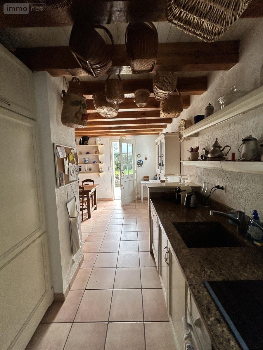 BELLE ILE EN MER - Située à quelques minutes à pied du centre bourg de Sauzon, avec vue mer et port de Sauzon, propriété comprenant au rez-de-chaussée : pièce à vivre avec cuisine ouverte équipée, chambre avec salle d'eau et WC attenants, bureau, W.C. A l'étage : quatre chambres, salle d'eau, W.C. Cellier buanderie. Terrasse carrelée, préau au Pignon Est, deux cabanons de jardin, jardin. SAUZON