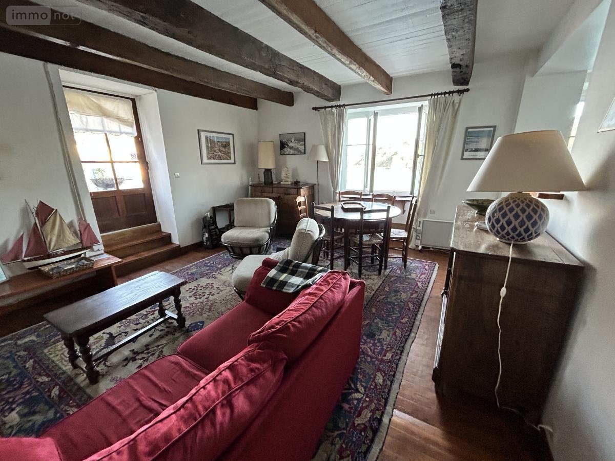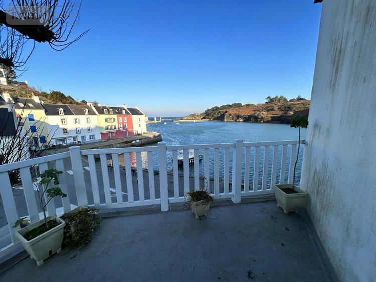 BELLE ILE EN MER - Maison de ville située dans le bourg de SAUZON avec vue imprenable sur le port, distribuée sur 3 niveaux comprenant au rez-de-chaussée: entrée, deux chambres, salle d'eau, W.C., au premier étage: pièce à vivre avec cuisine ouverte et accès à une terrasse de 15m² donnant sur le port, au deuxième étage sous combles: vaste chambre avec salle d'eau et W.C. SAUZON