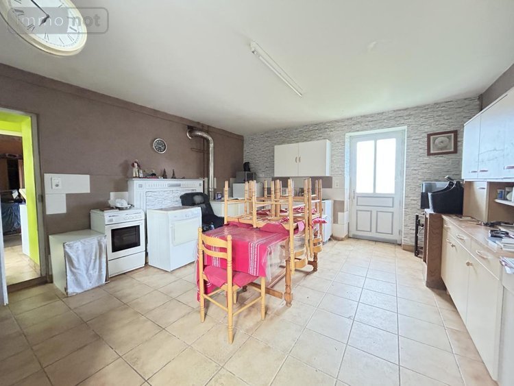 Elle offre au rez de chaussée : une dégagement, une grande cuisine avec cheminée, une chambre, un wc