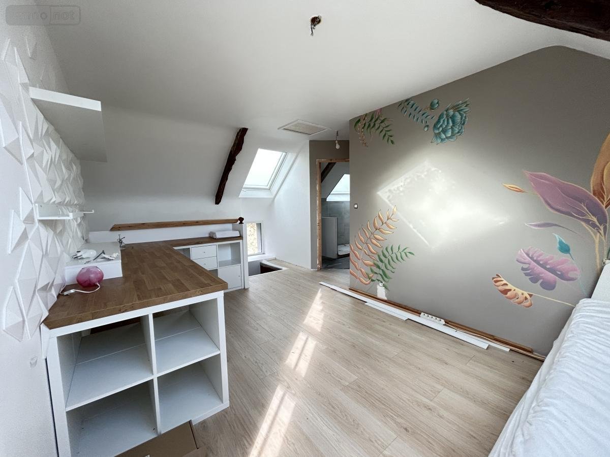 A l'étage : une vaste et lumineuse mezzanine aux multiples usages (bureau ou chambre supplémentaire), une chambre, une salle-d'eau-wc à achever.