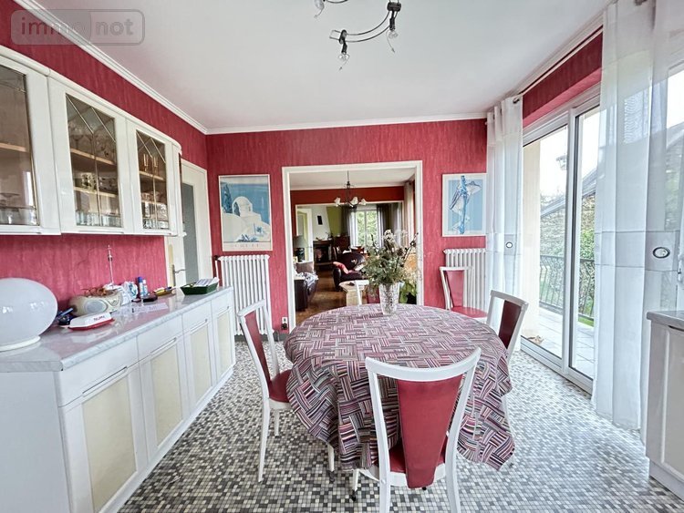 - rez de chaussée : hall d'entrée, dégagement, cuisine aménagée et équipée accédant à un balcon, séjour-salon sur beau parquet, avec cheminée et insert et donnant sur le balcon, deux chambres sur parquet, bureau, wc, salle d'eau équipée