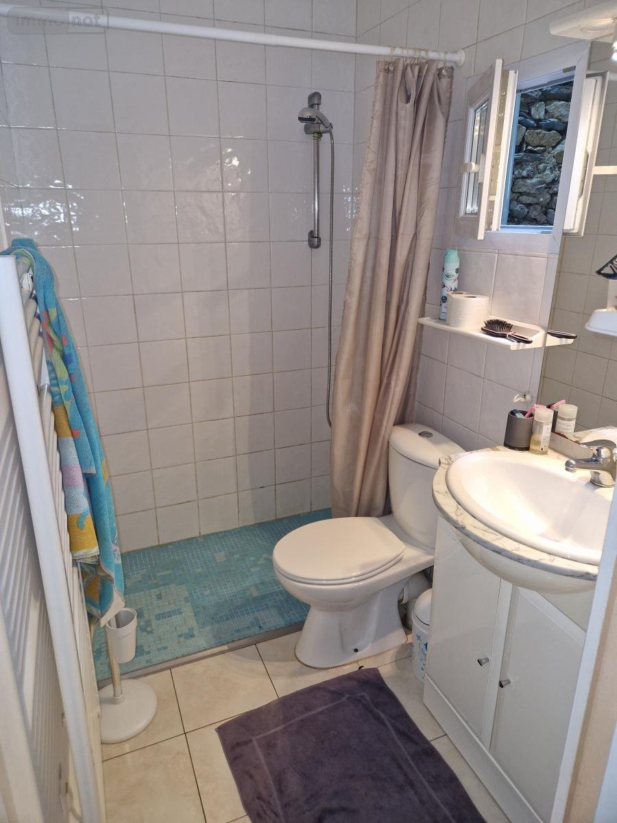 - au rez-de-chaussée : une cuisine.séjour, un coin salon, une salle de bain avec un wc, un dégagement, une salle d'eau avec un wc et à suivre une pièce à finir de rénover avec une cheminée.