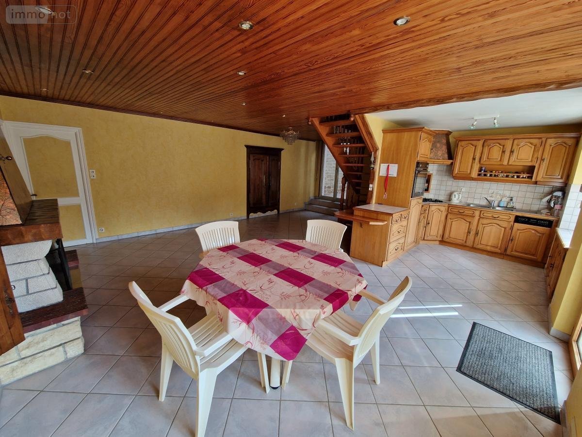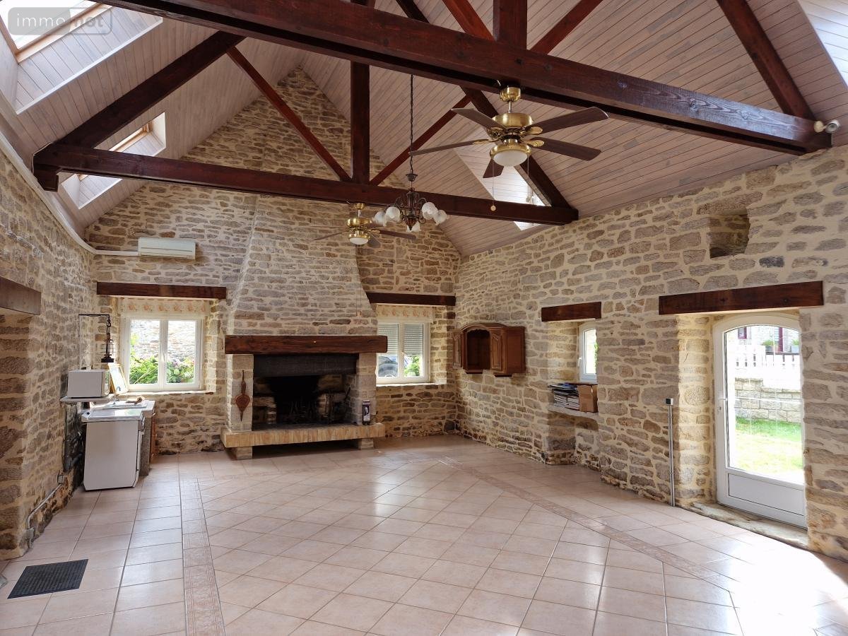 - au rez-de-chaussée : une cuisine aménagée et équipée ouverte sur un salon/séjour avec une cheminée, un dégagement avec placard, une chambre, une salle d'eau , un wc, un second salon/séjour ( env 60 m2) avec cheminée - poêle à bois et chauffage pompe à chaleur.