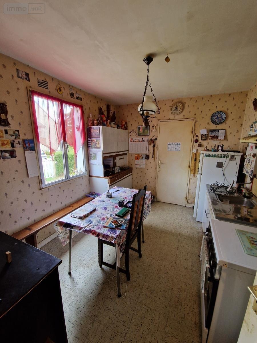 Maison de plain-pied comprenant : une entrée, une cuisine, un salon/séjour avec une cheminée, deux chambres, une salle de bain , un wc et un garage.